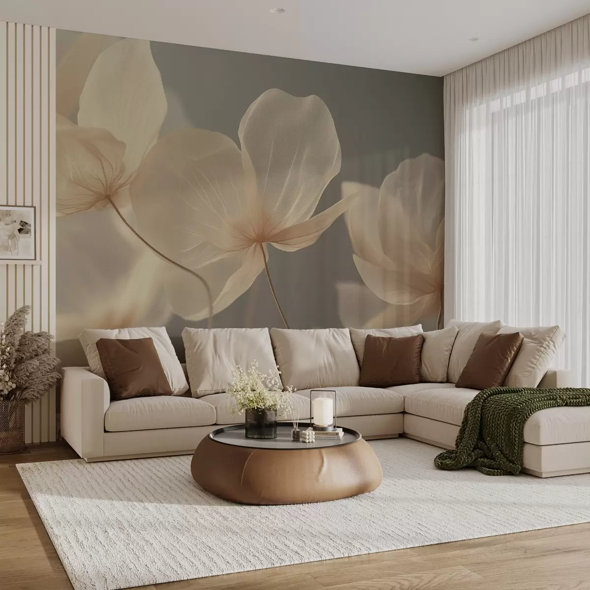 Zidne murale Latice lotosa, nježna kompozicija sa sivom pozadinom br. w08500v2