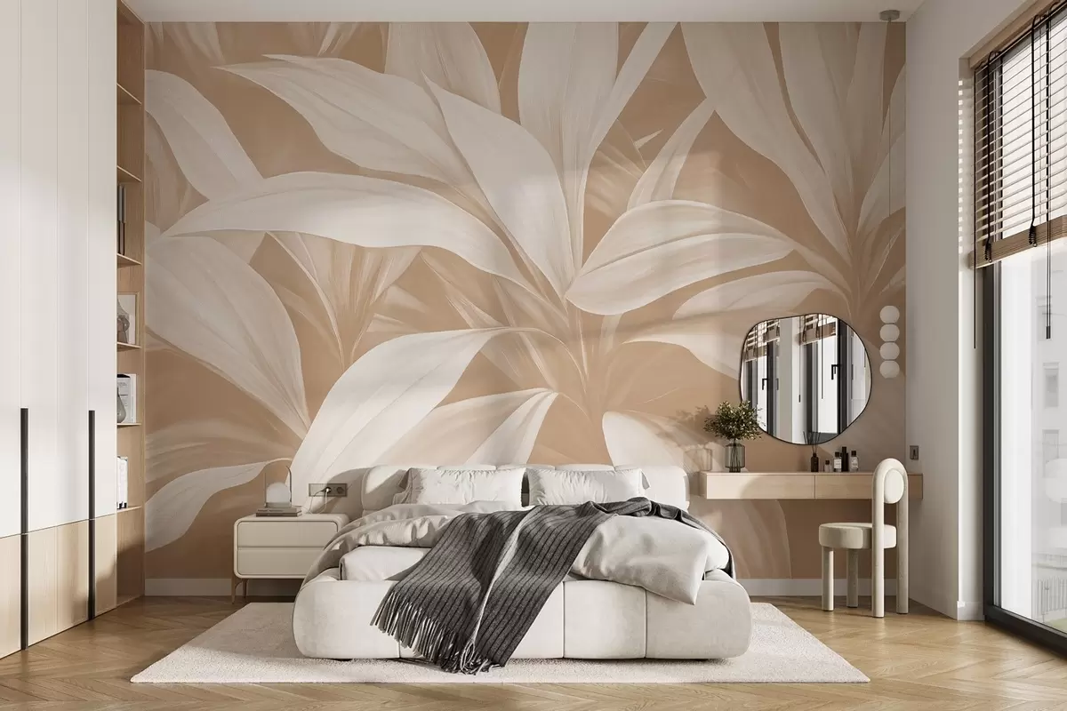 Zidne murale Veliki listovi biljke u nježno ružičastoj boji br. w08501