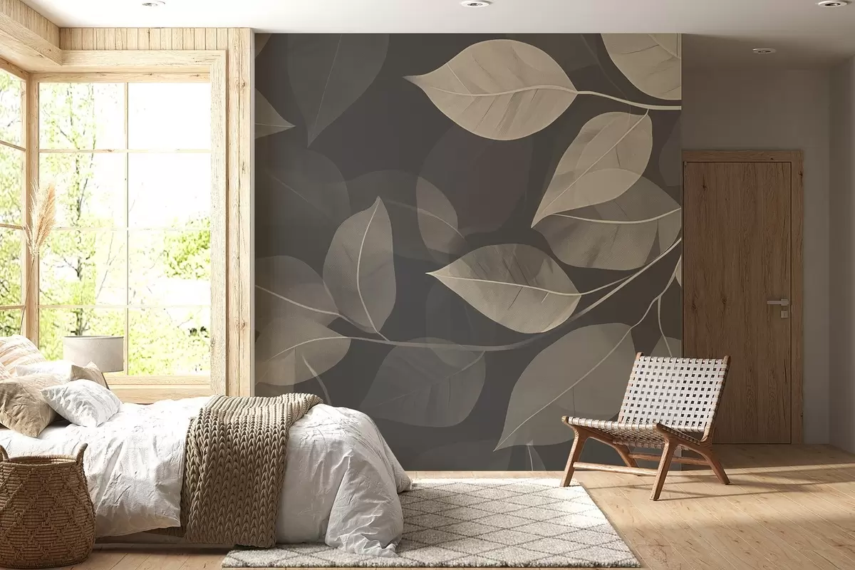 Zidne murale Grane lišća u plavim i sivim tonovima br. w08502v1