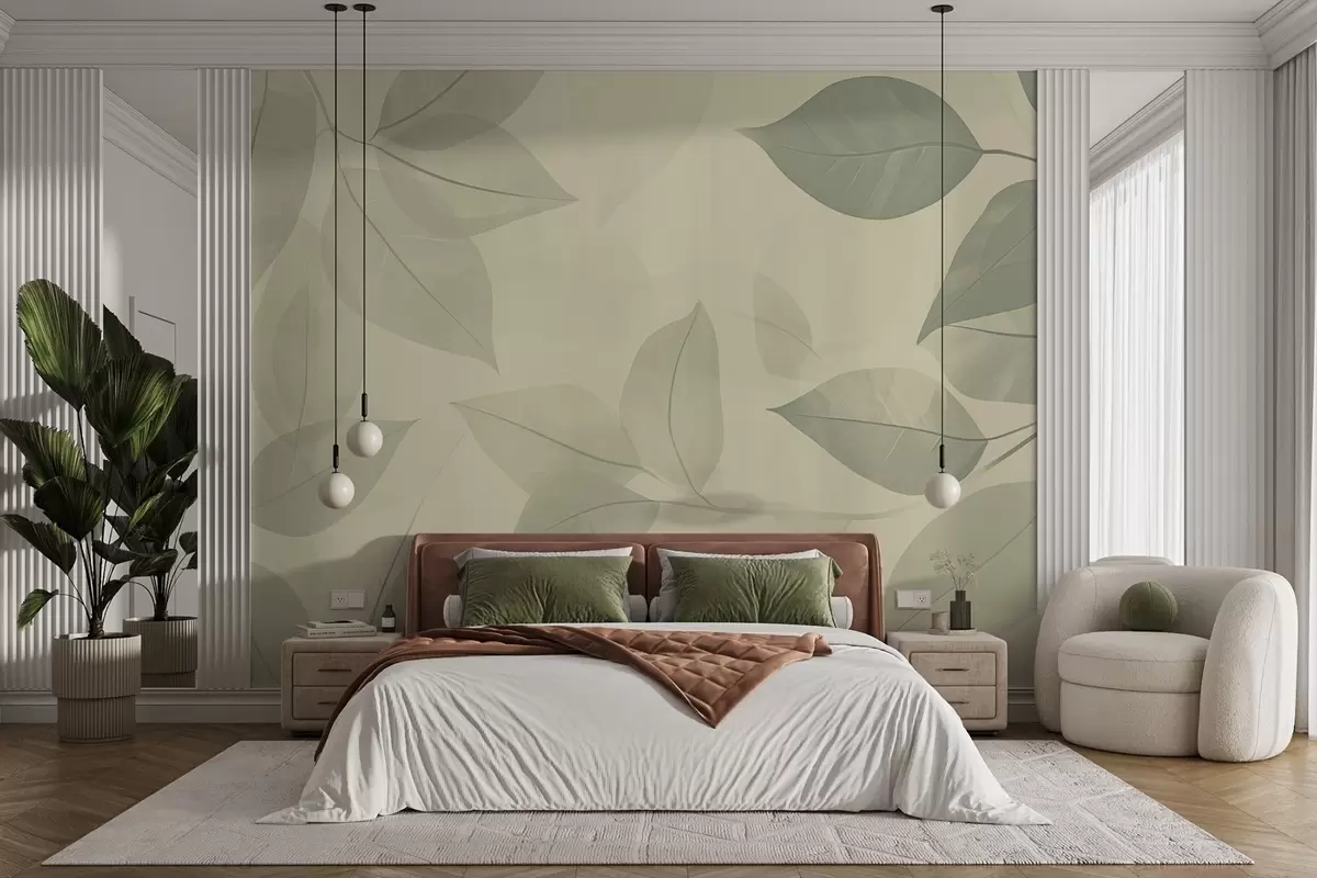 Zidne murale Grane zelenog lišća na nježno bež pozadini br. w08502v2