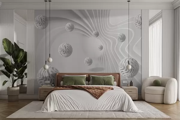 Zidne murale 3D siva apstrakcija sa sferama i efektom dubine br. w08553