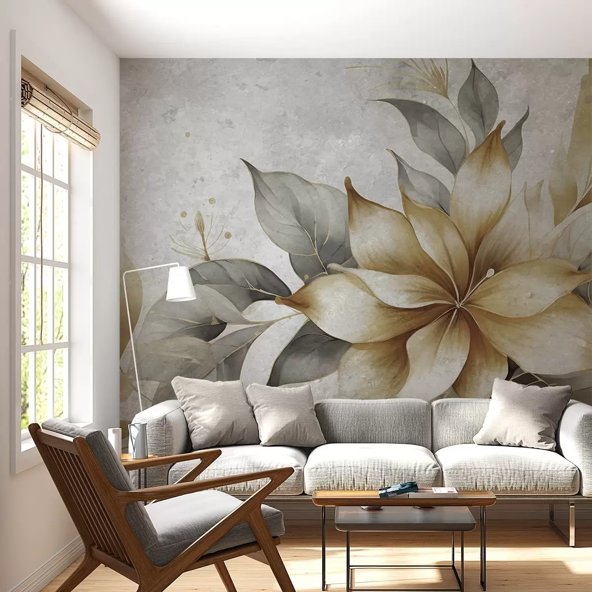 Zidne murale Grana cvijeća na imitaciji betonske podloge br. w08623