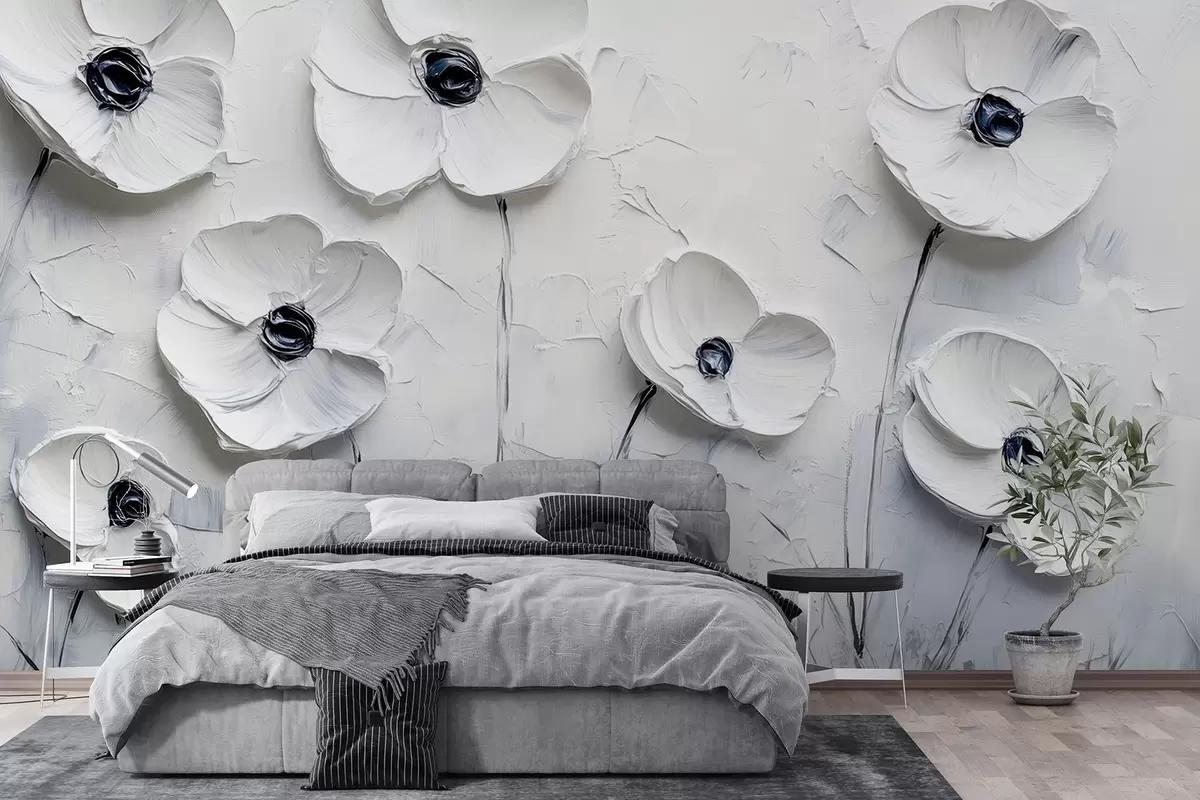Zidne murale Elegantni sivi cvjetovi s imitacijom poteza kistom br. w08632