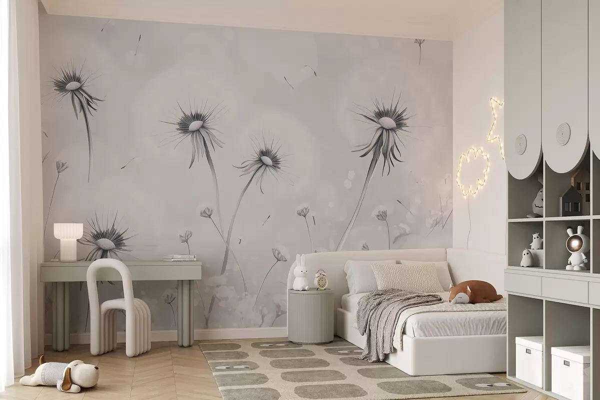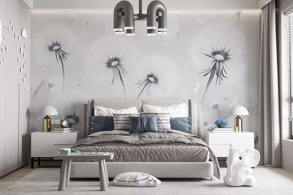 Zidne murale Elegantni maslačci i poljsko cvijeće u stilu slikanja u plavim tonovima br. w08657v2