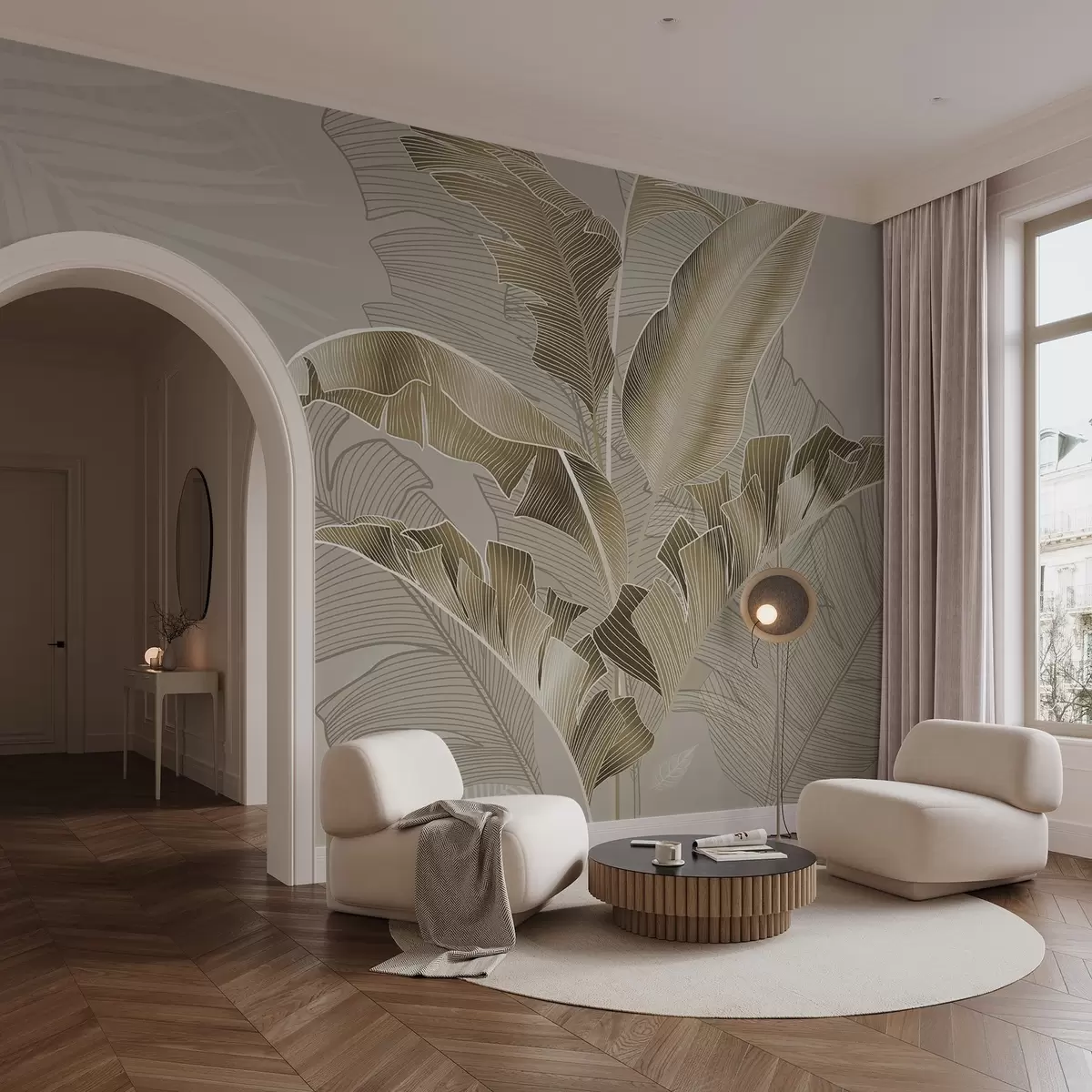 zidne murale Skladna kompozicija tropskog lišća u nijansama bež i smeđe, s detaljnim linijama w08698