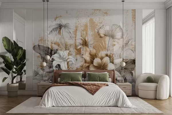 Zidne murale Vintage dizajn s egzotičnim cvijećem i biljkama br. w08767