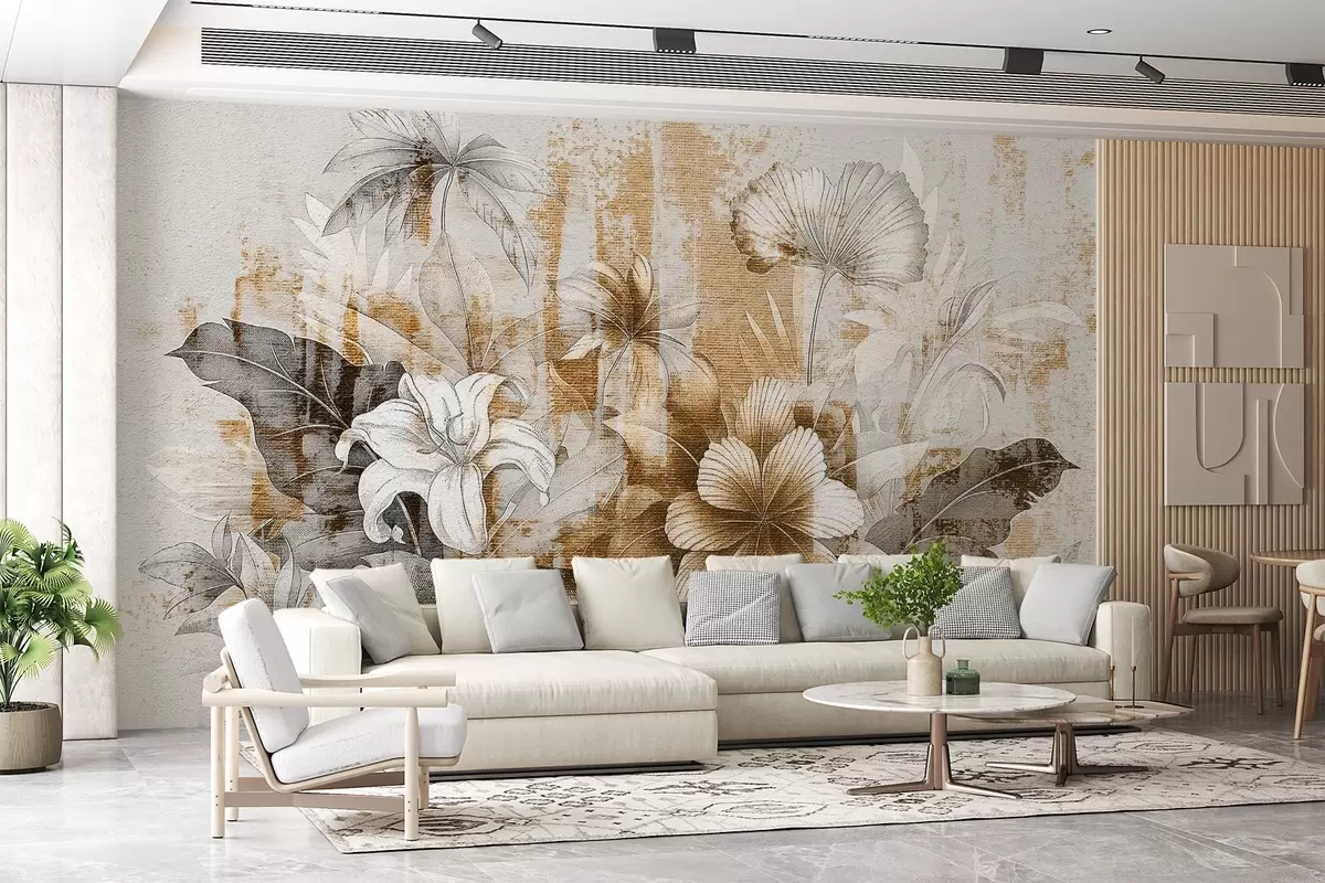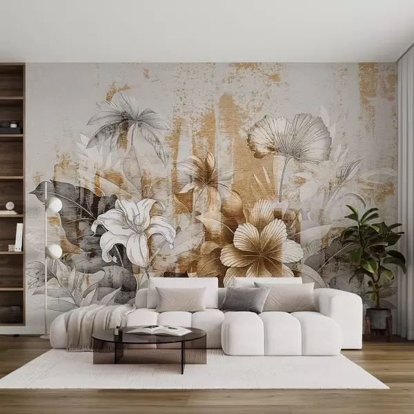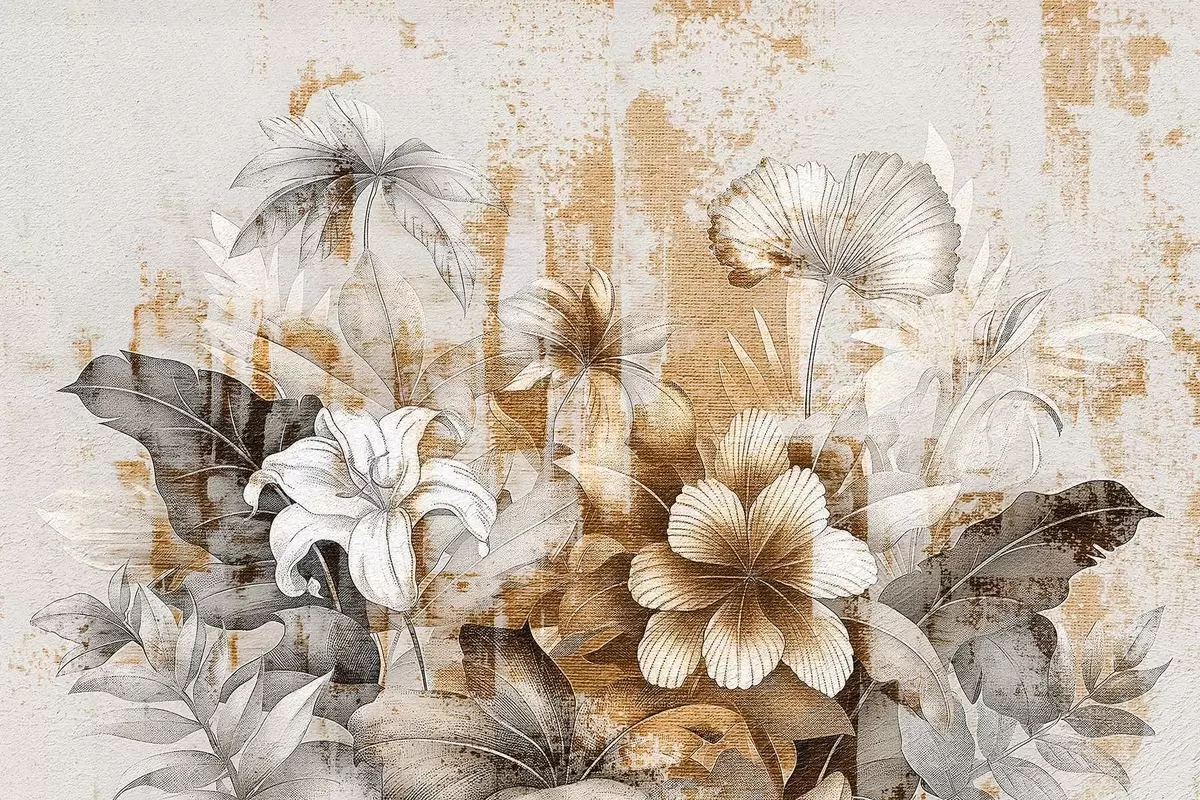 Zidne murale Vintage dizajn s egzotičnim cvijećem i biljkama br. w08767