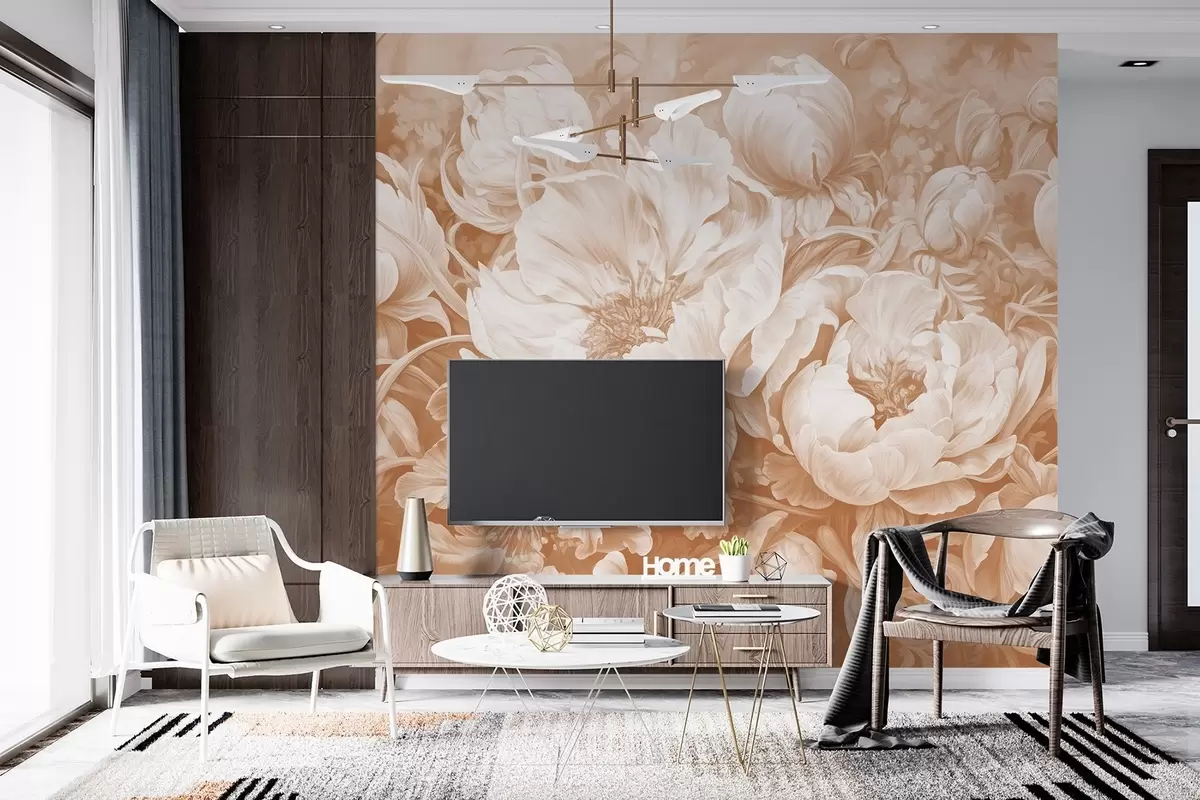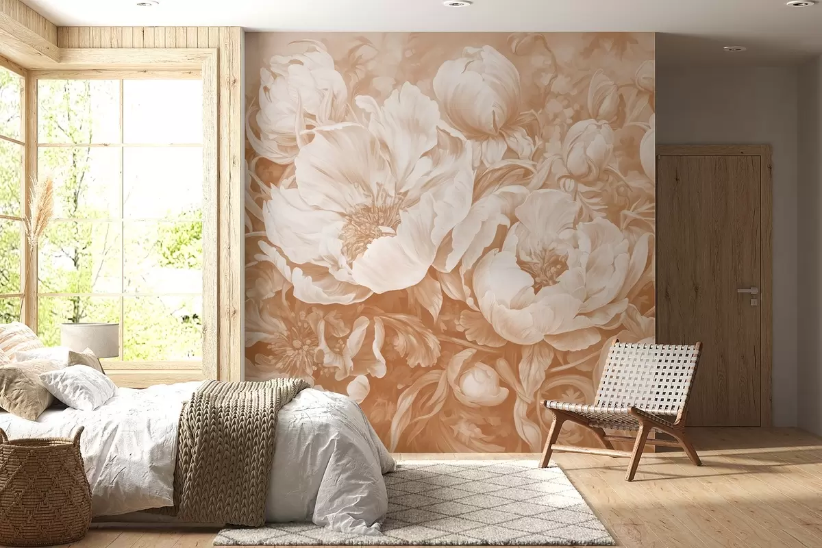 Zidne murale Tulipani i božuri, cvjetna kompozicija u stilu bež uljanog poteza br. w08817v1