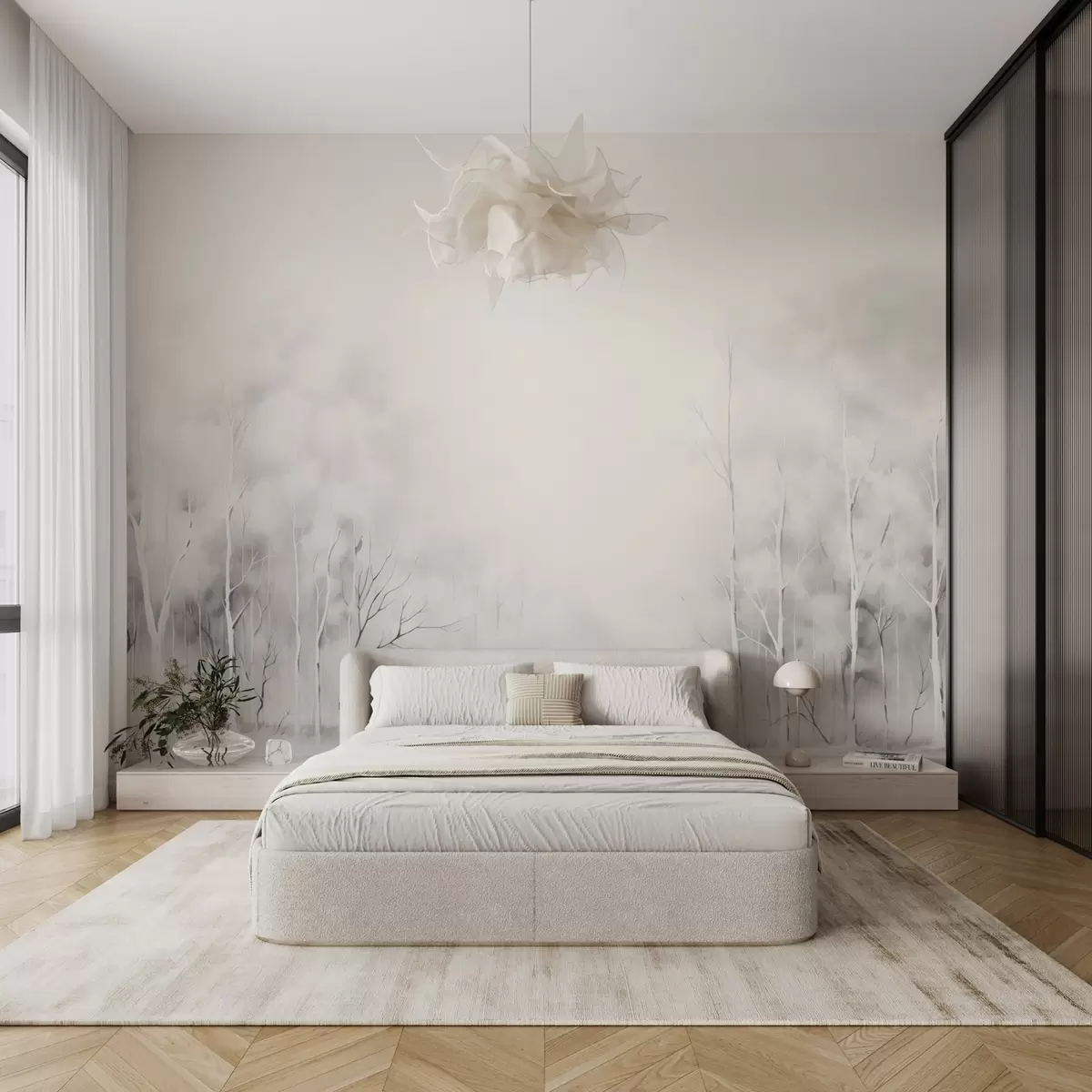 zidne murale Drveće u magli u stilu akvarela na toploj pozadini w08875