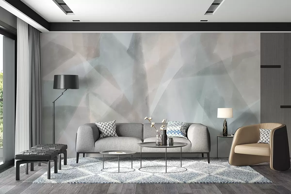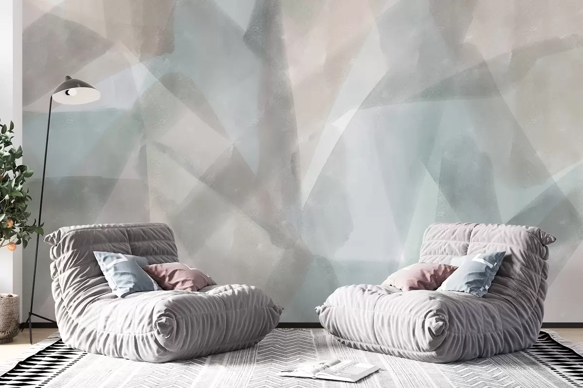 Zidne murale Apstraktni geometrijski oblici s efektom akvarela, nježne pastelne boje br. w08919