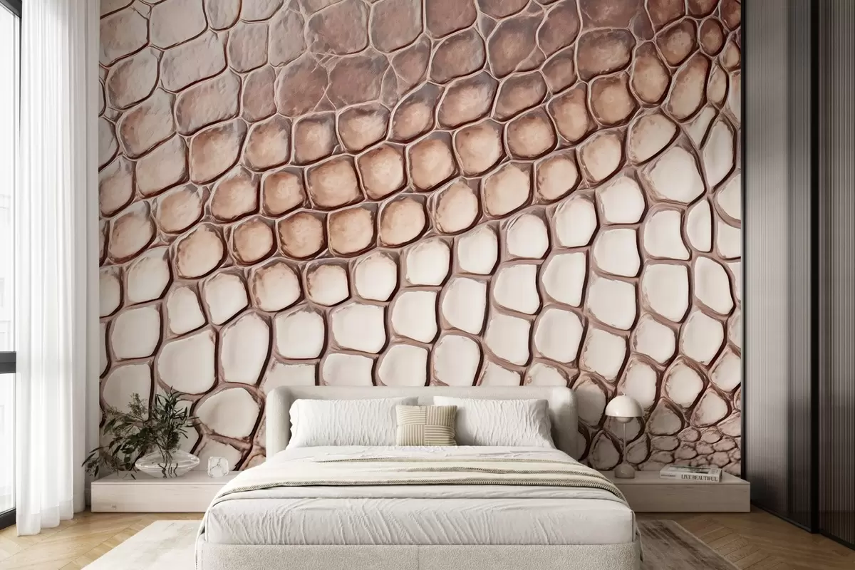 Zidne murale Bijelo-smeđa koža gmazova, uzorak ljuski br. w08957