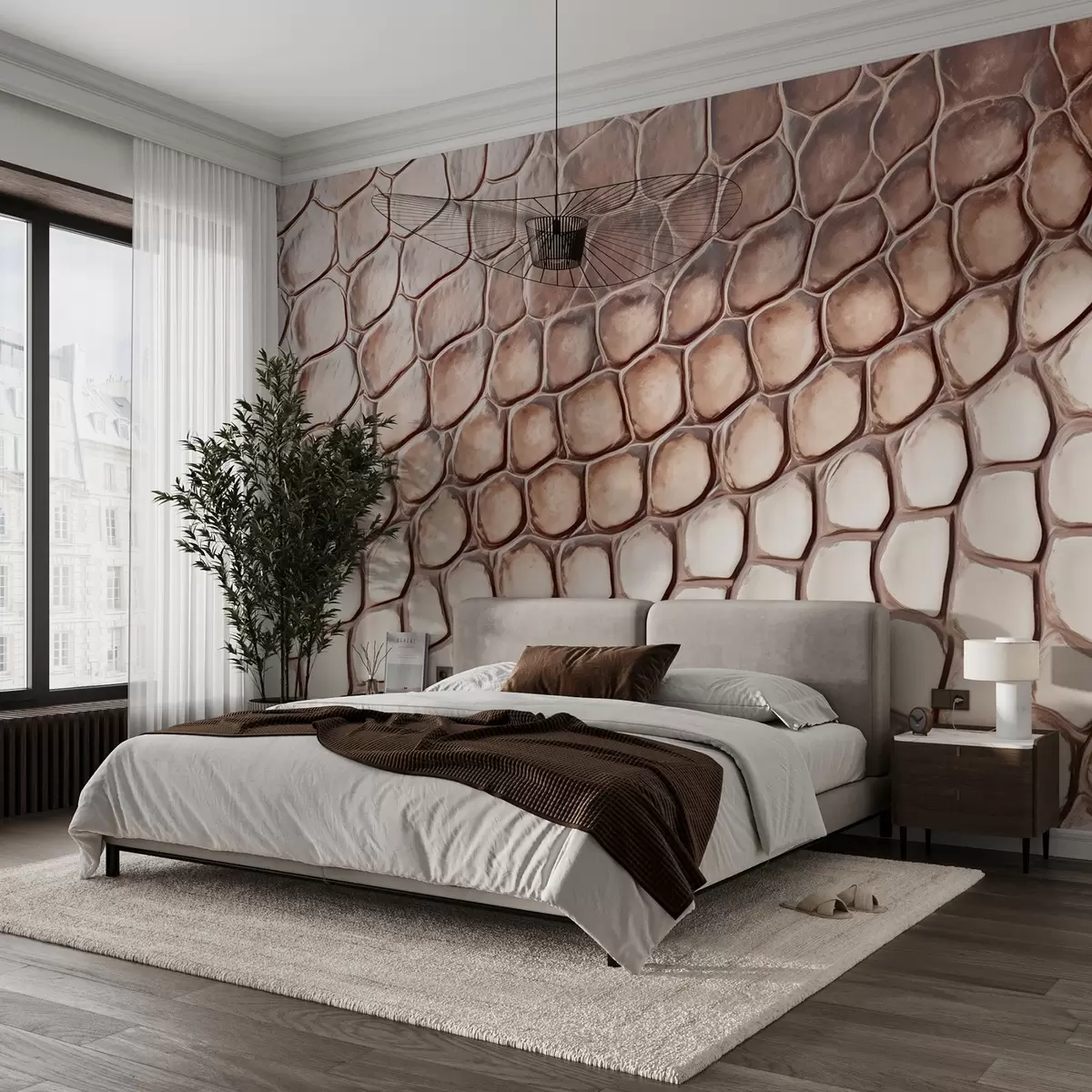 Zidne murale Bijelo-smeđa koža gmazova, uzorak ljuski br. w08957