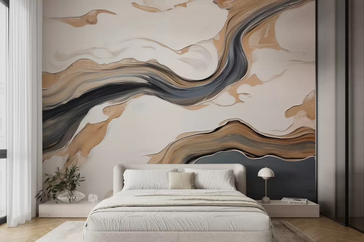 zidne murale Smeđe-sive pruge u obliku valova w09001