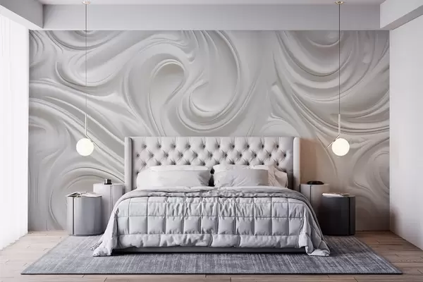 Zidne murale Bijela apstraktna moderna umjetnost s fluidnim kovitlacima i valovima, glatka tekstura, elegantan dizajn, minimalistička estetika br. w09059
