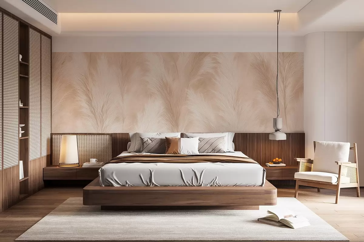 Zidne murale Pampas trava u bež i ružičastim tonovima br. w09077