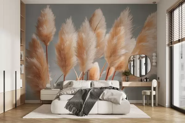 Zidne murale Bež pampas trava na plavo-sivoj pozadini br. w09083