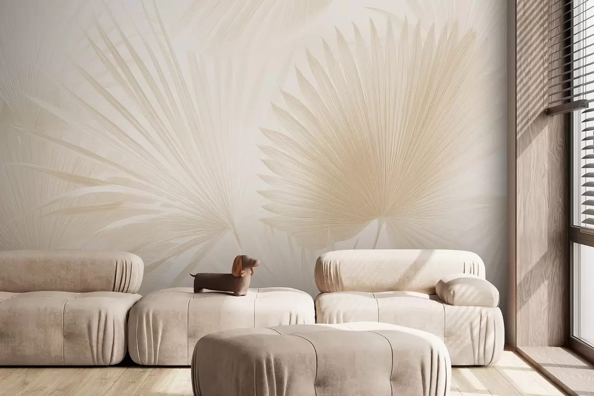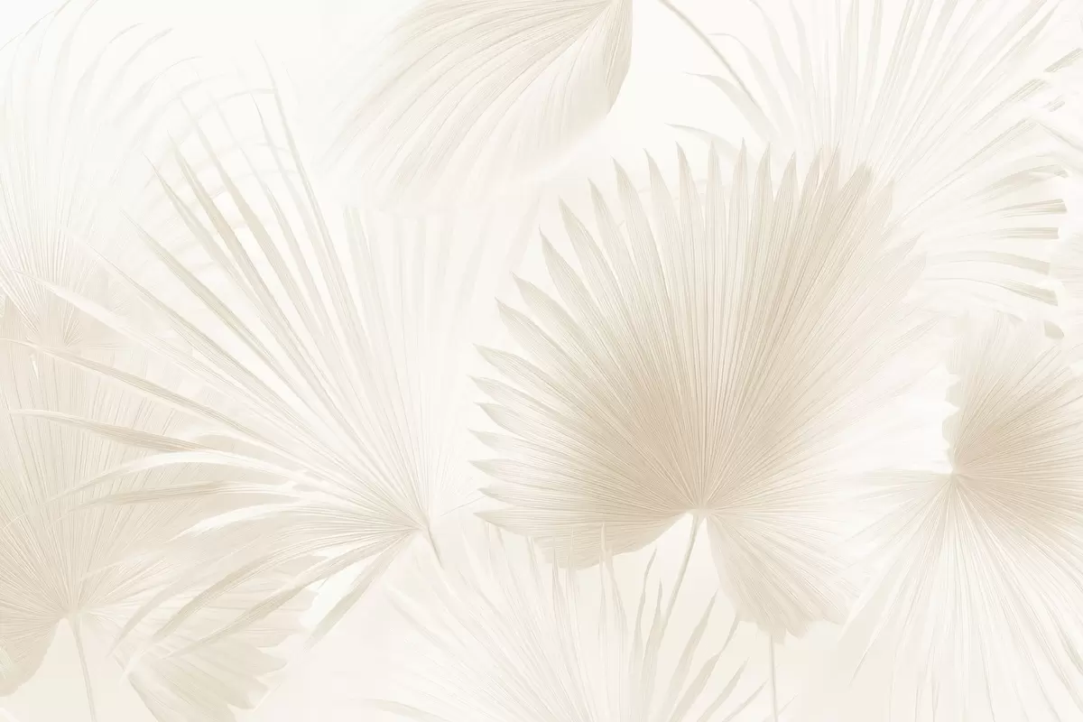 Zidne murale Mekane lepeze od tropskog lišća na svijetloj pozadini br. w09084v1