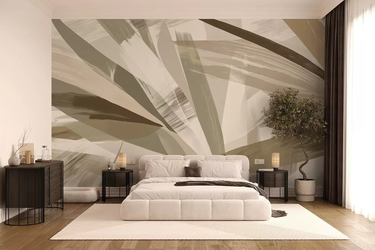 Zidne murale Apstraktno lišće u zelenim i bež tonovima br. w09091
