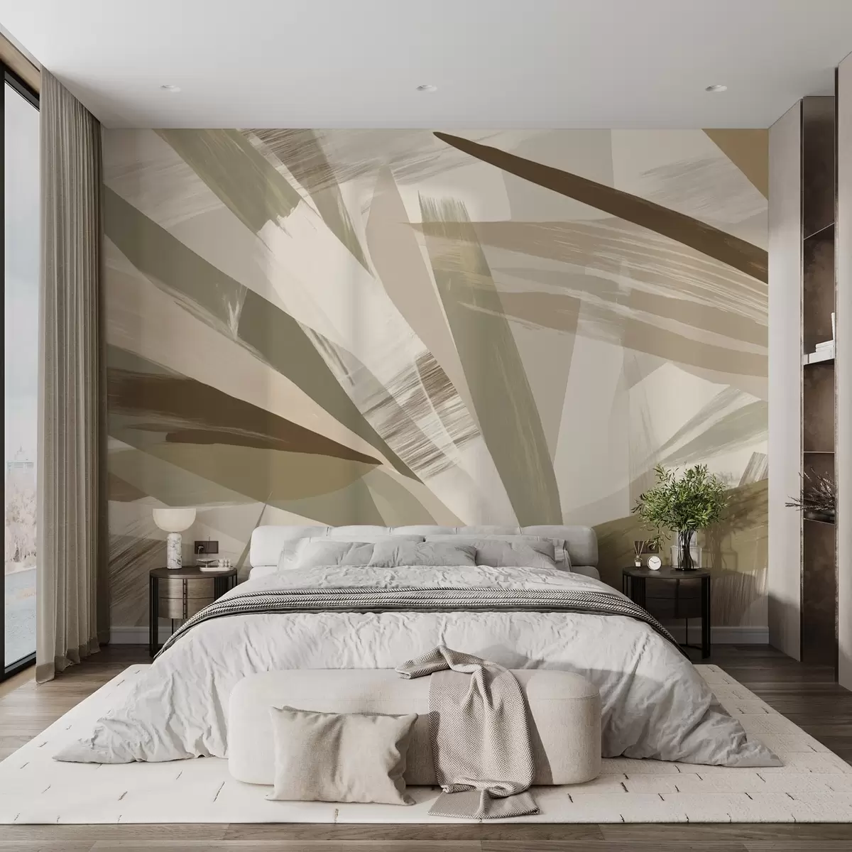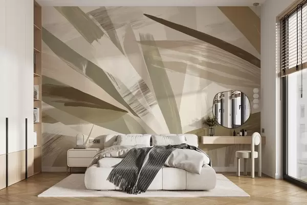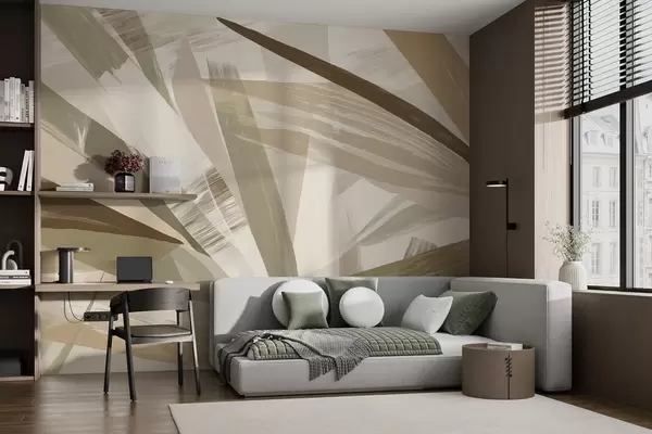 Zidne murale Apstraktno lišće u zelenim i bež tonovima br. w09091