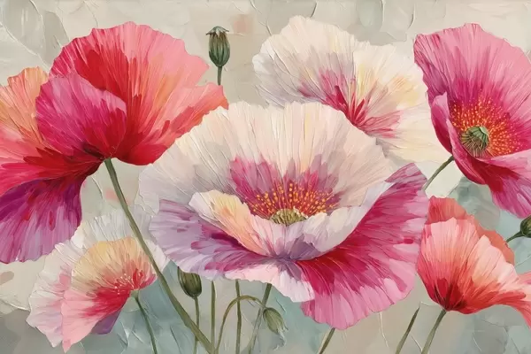 Zidne murale Bijeli i crveni makovi u stilu uljanih slika s odvažnim potezima kista br. w09097