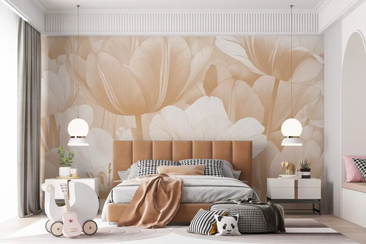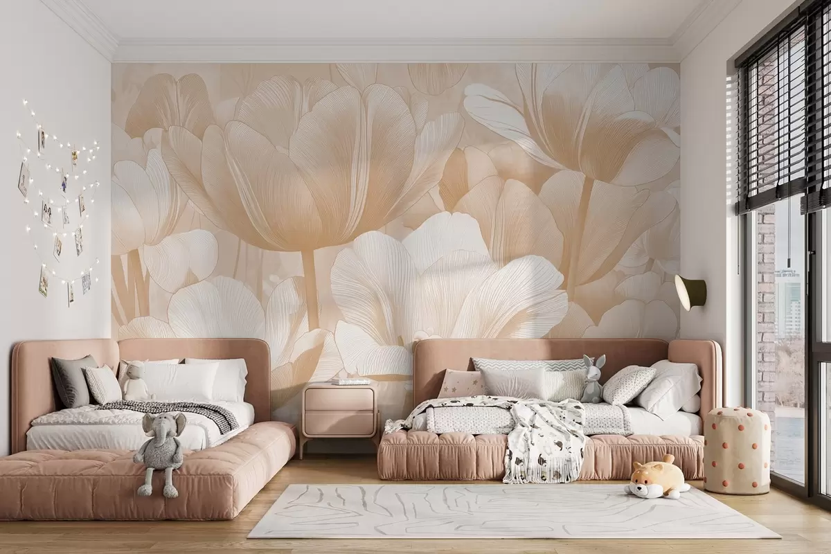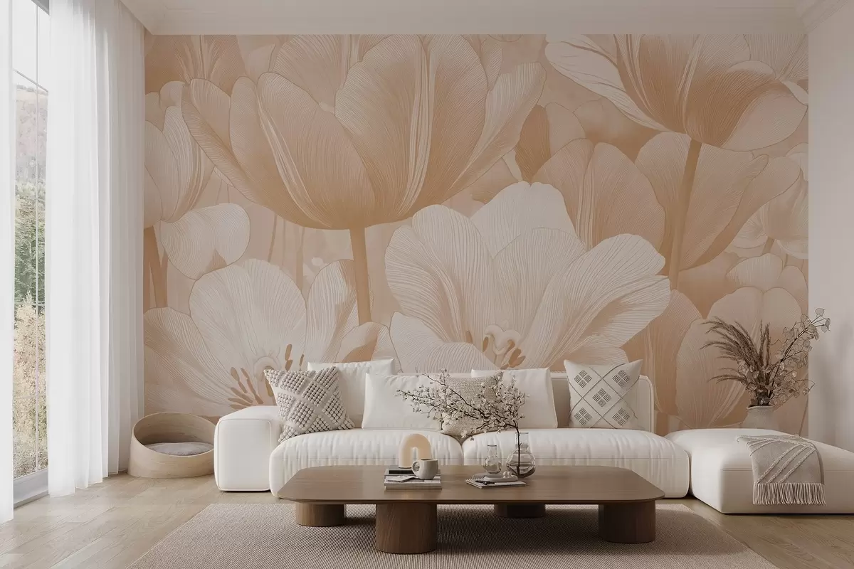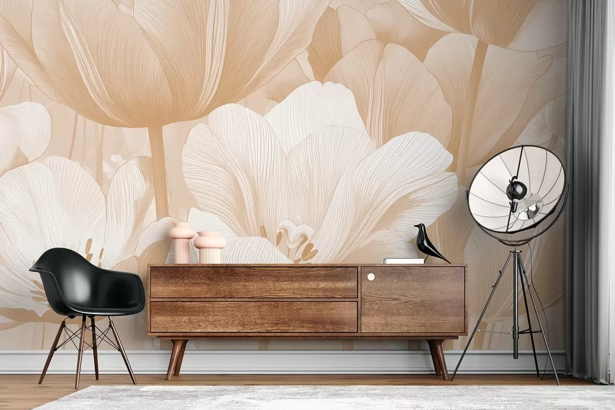 Zidne murale Bež makovi u svijetlim tonovima br. w09099