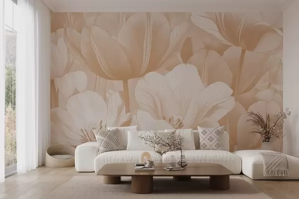 zidne murale Bež makovi u svijetlim tonovima w09099