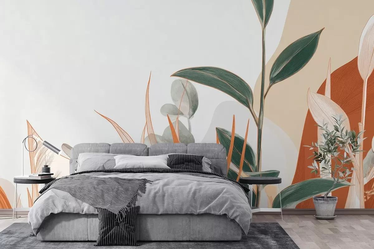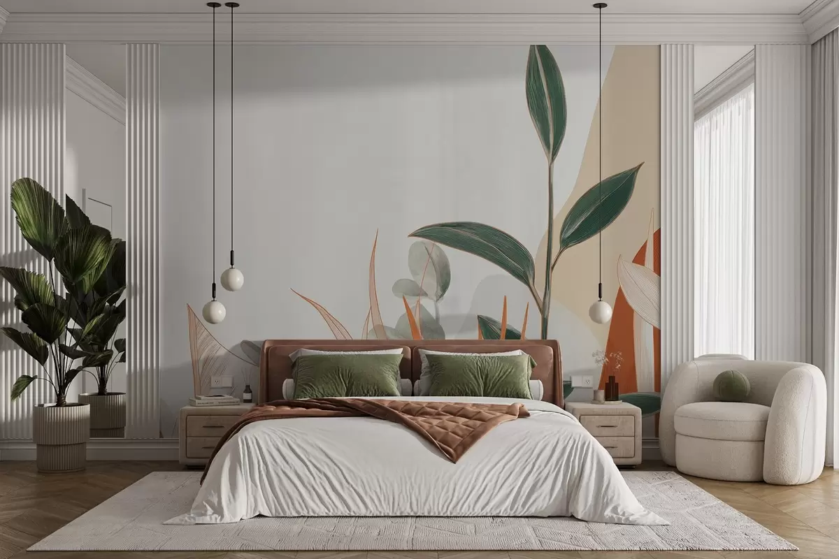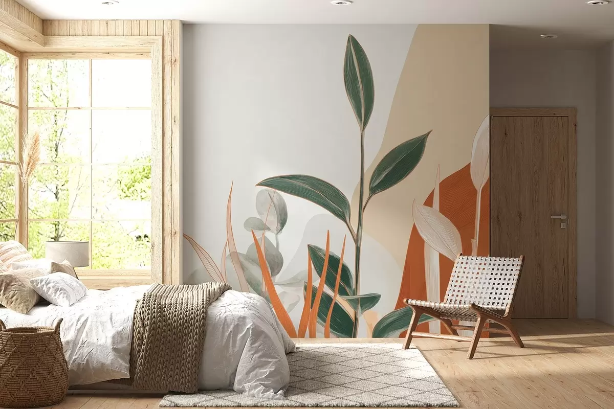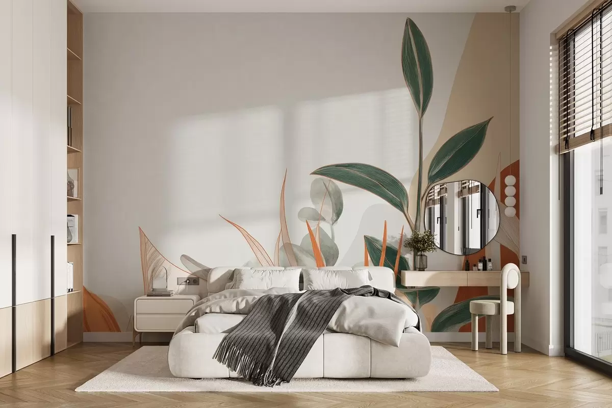 Zidne murale Lišće u bež i zelenim tonovima br. w09101