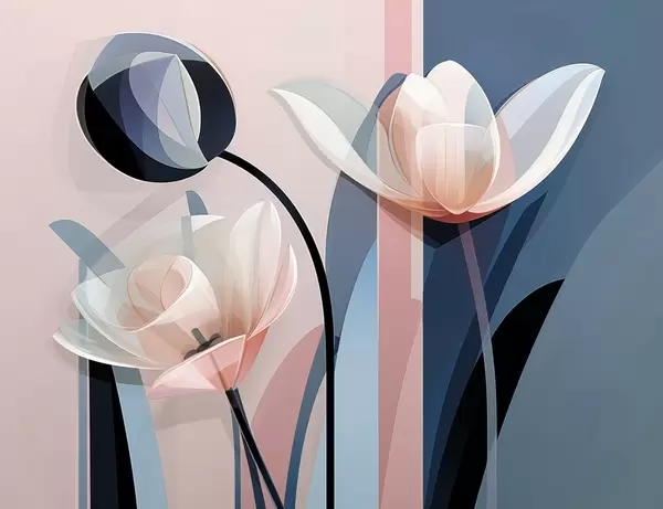 Zidne murale Apstraktni moderni dizajn s tulipanima s prozirnim laticama u pastelnim nijansama ružičaste, bijele i tamnoplave br. w09116