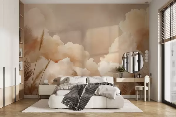 Zidne murale Bež nebo s toplim oblacima i pampas travom br. w09124