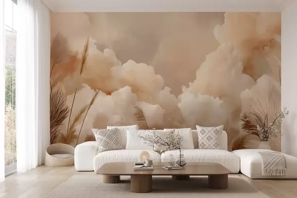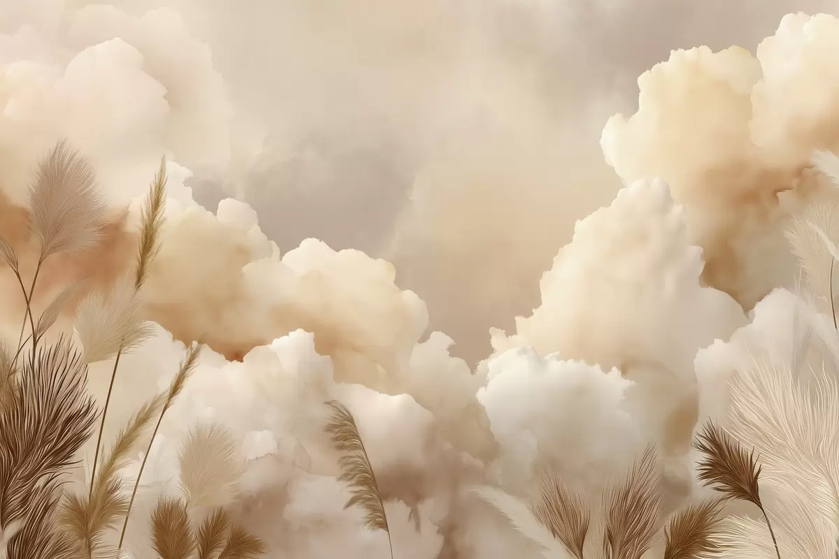 Zidne murale Bež nebo s toplim oblacima i pampas travom br. w09124