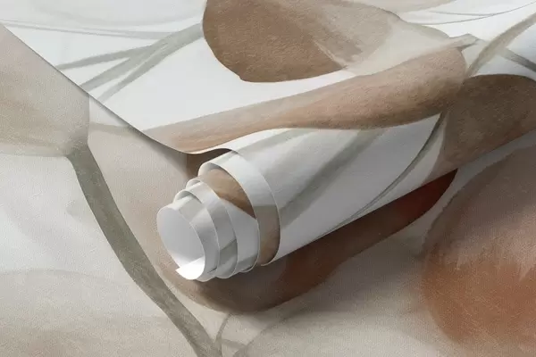 Zidne murale Teksturna akvarelna imitacija smeđeg lišća i grana, meke boje, nježni detalji na bijeloj pozadini br. w09133