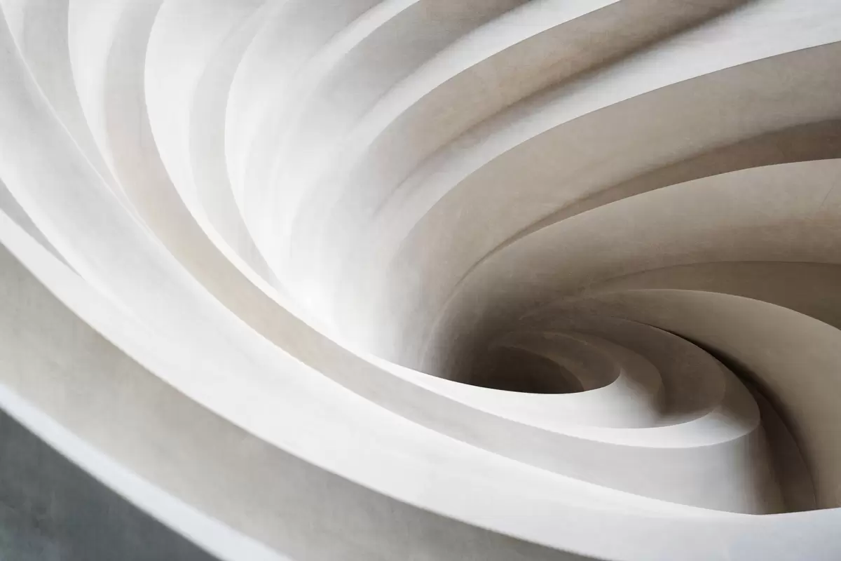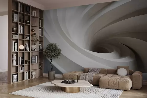 Zidne murale Apstraktni teksturirani vrtlog bijelih i bež slojeva, stvarajući efekt vrtloga, dinamična kompozicija, moderni minimalistički dizajn br. w09144