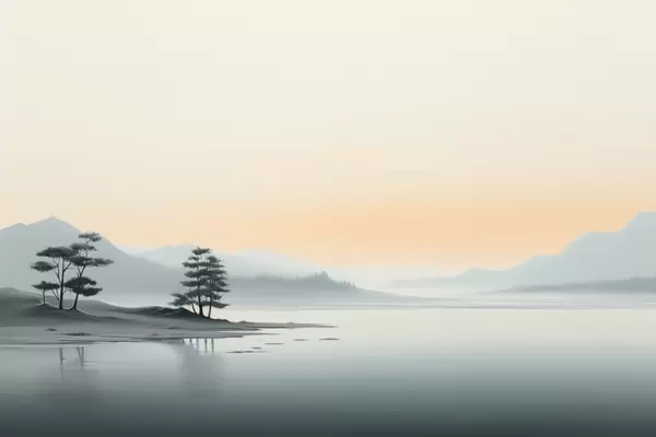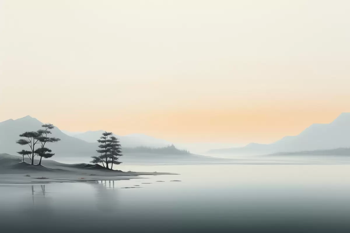 Zidne murale Minimalistički krajolik s maglovitim planinama i jezerom br. w09151