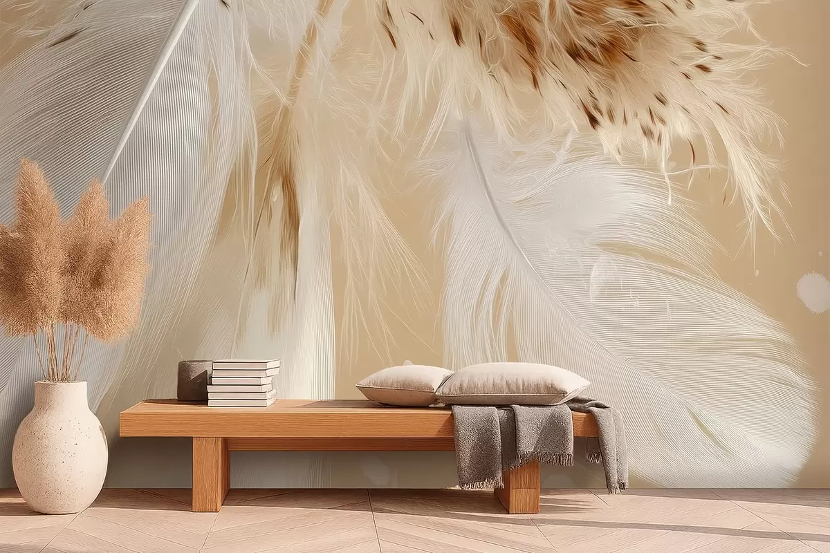 Zidne murale Svijetlo perje u toplim bež i bijelim tonovima br. w09153