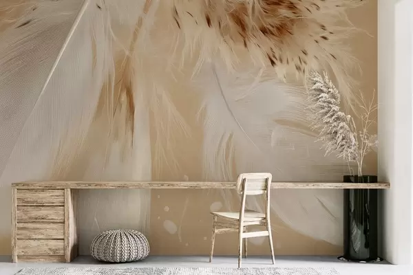 zidne murale Svijetlo perje u toplim bež i bijelim tonovima w09153