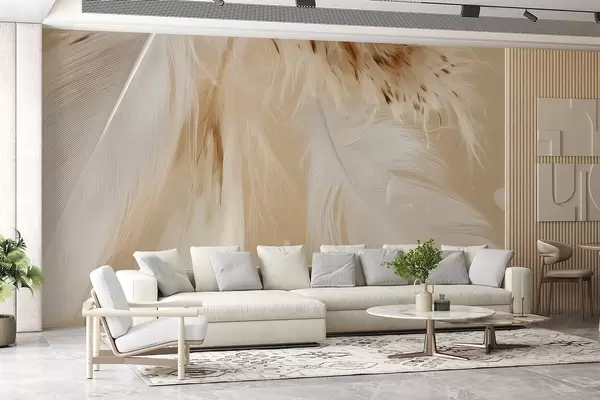 Zidne murale Svijetlo perje u toplim bež i bijelim tonovima br. w09153