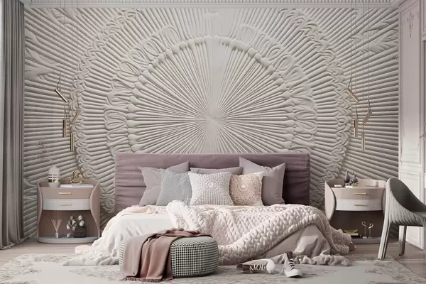 Zidne murale Apstraktni teksturirani kružni otisak s radijalnim linijama i ukrasnim elementima, simetrični dizajn, reljefna tekstura br. w09154