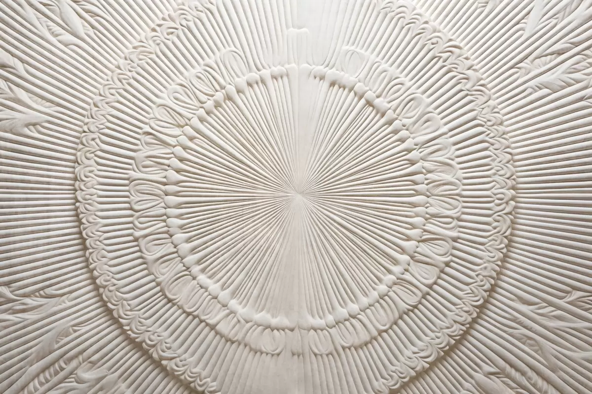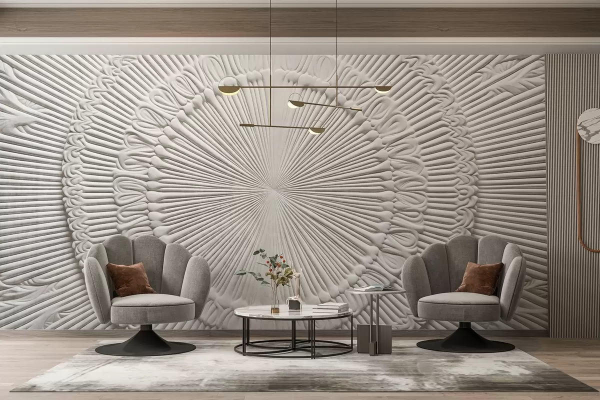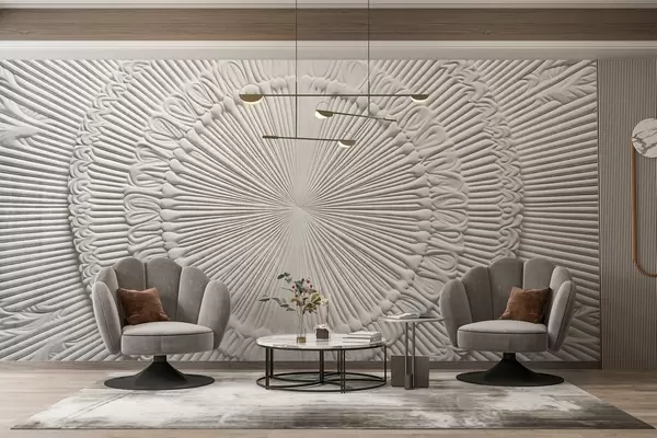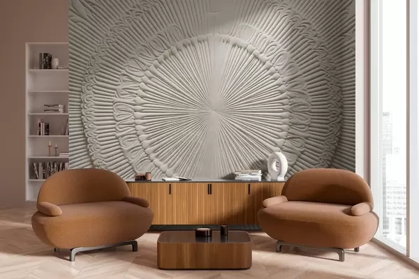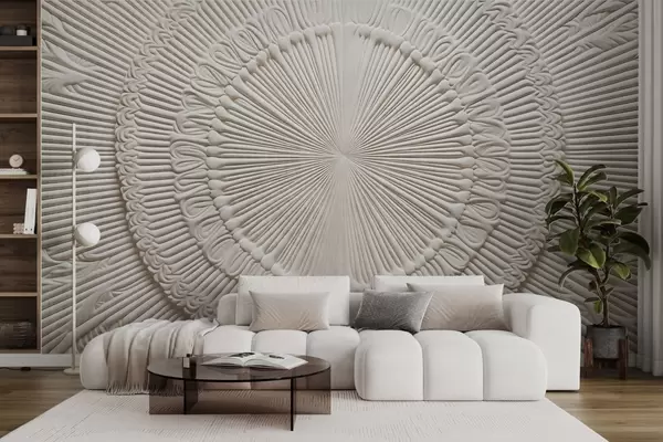 zidne murale Apstraktni teksturirani kružni otisak s radijalnim linijama i ukrasnim elementima, simetrični dizajn, reljefna tekstura w09154
