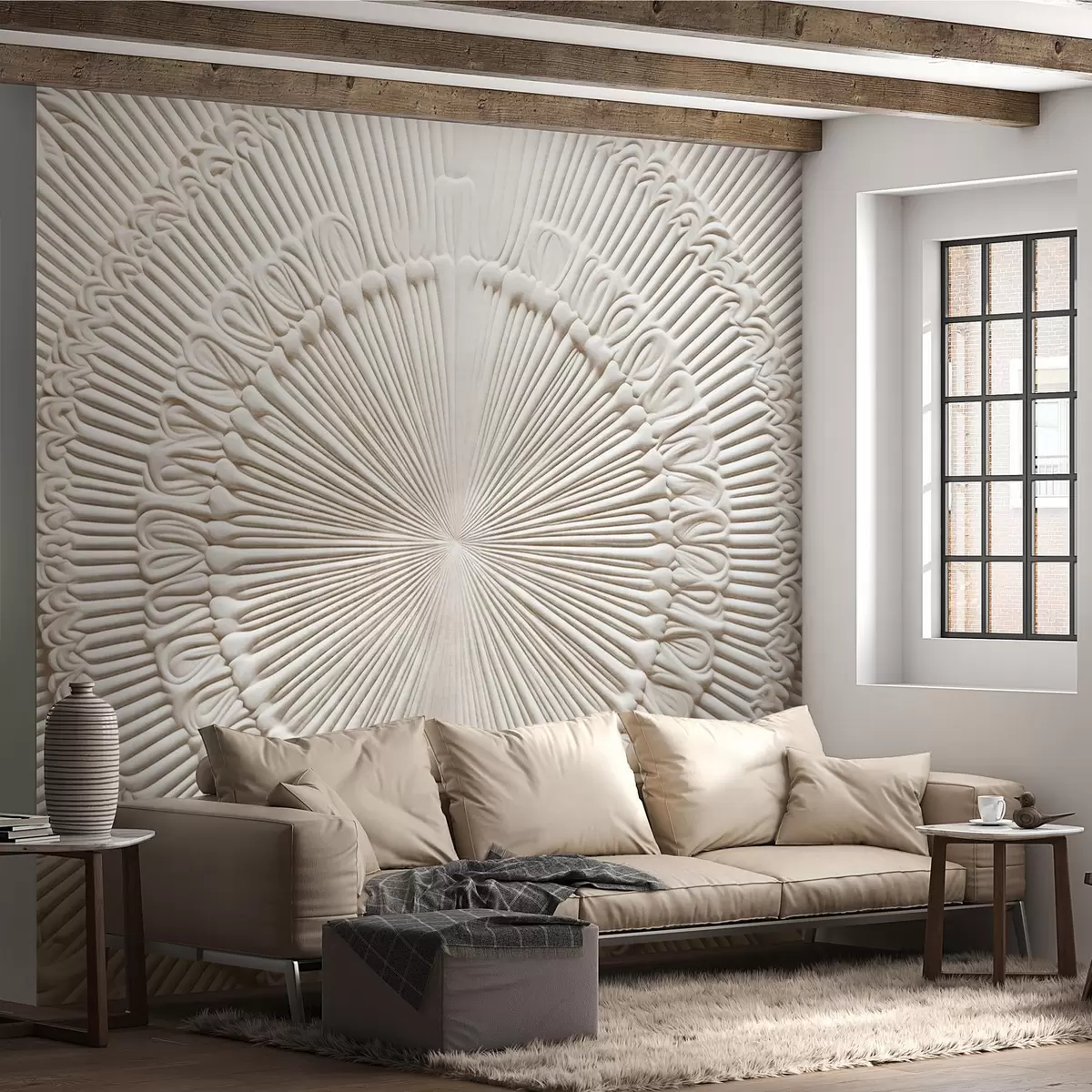 Zidne murale Apstraktni teksturirani kružni otisak s radijalnim linijama i ukrasnim elementima, simetrični dizajn, reljefna tekstura br. w09154