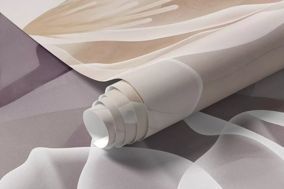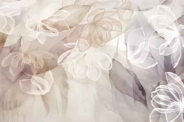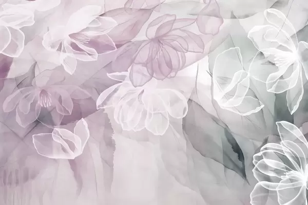 Zidne murale Cvijeće i lišće s prozirnim laticama u nijansama bijele, bež i ljubičaste, meko i nježno br. w09158