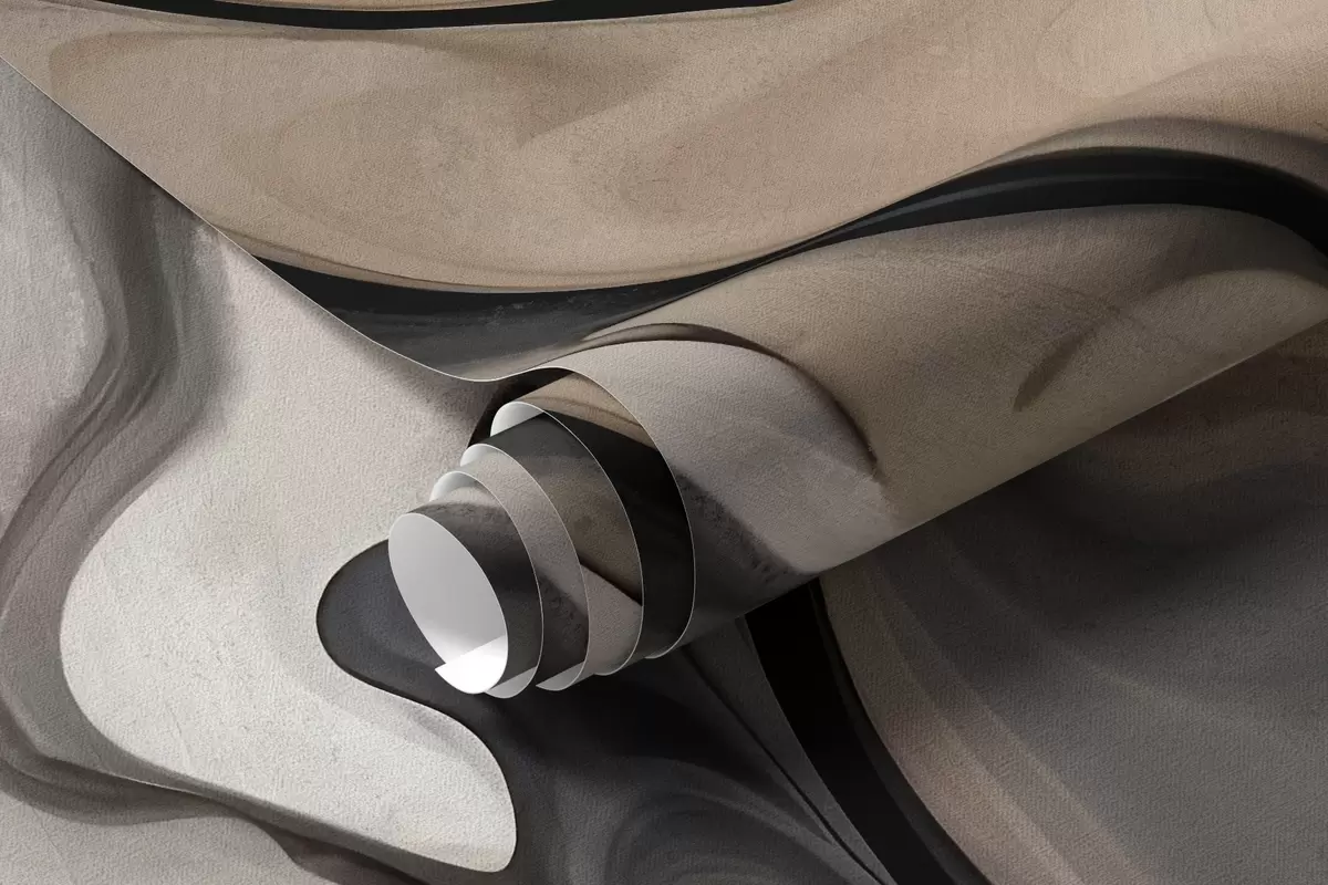 Zidne murale Apstraktna fluidna teksturirana slika u nijansama crne, bijele, sive i bež imitacije mramora br. w09160