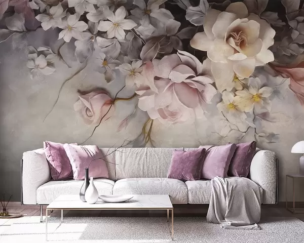 Zidne murale Veliko cvijeće visi niz zid na betonskoj pozadini br. w09184