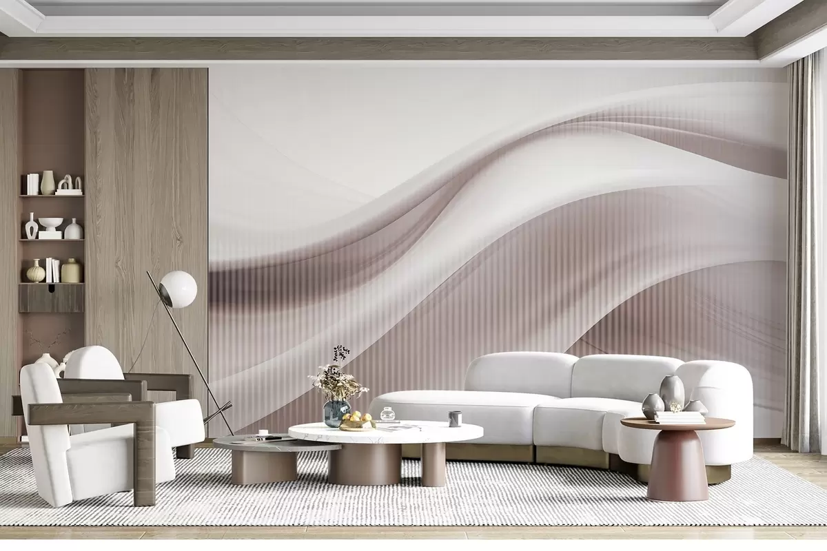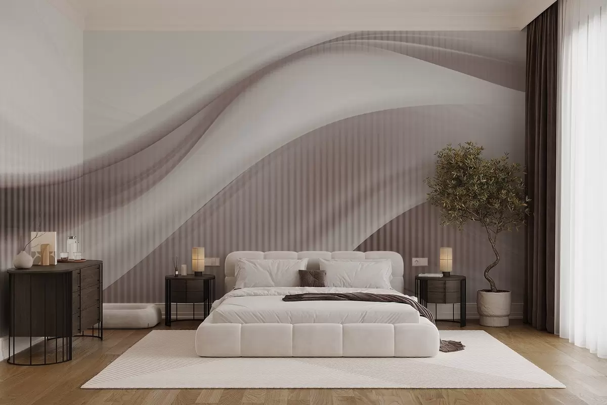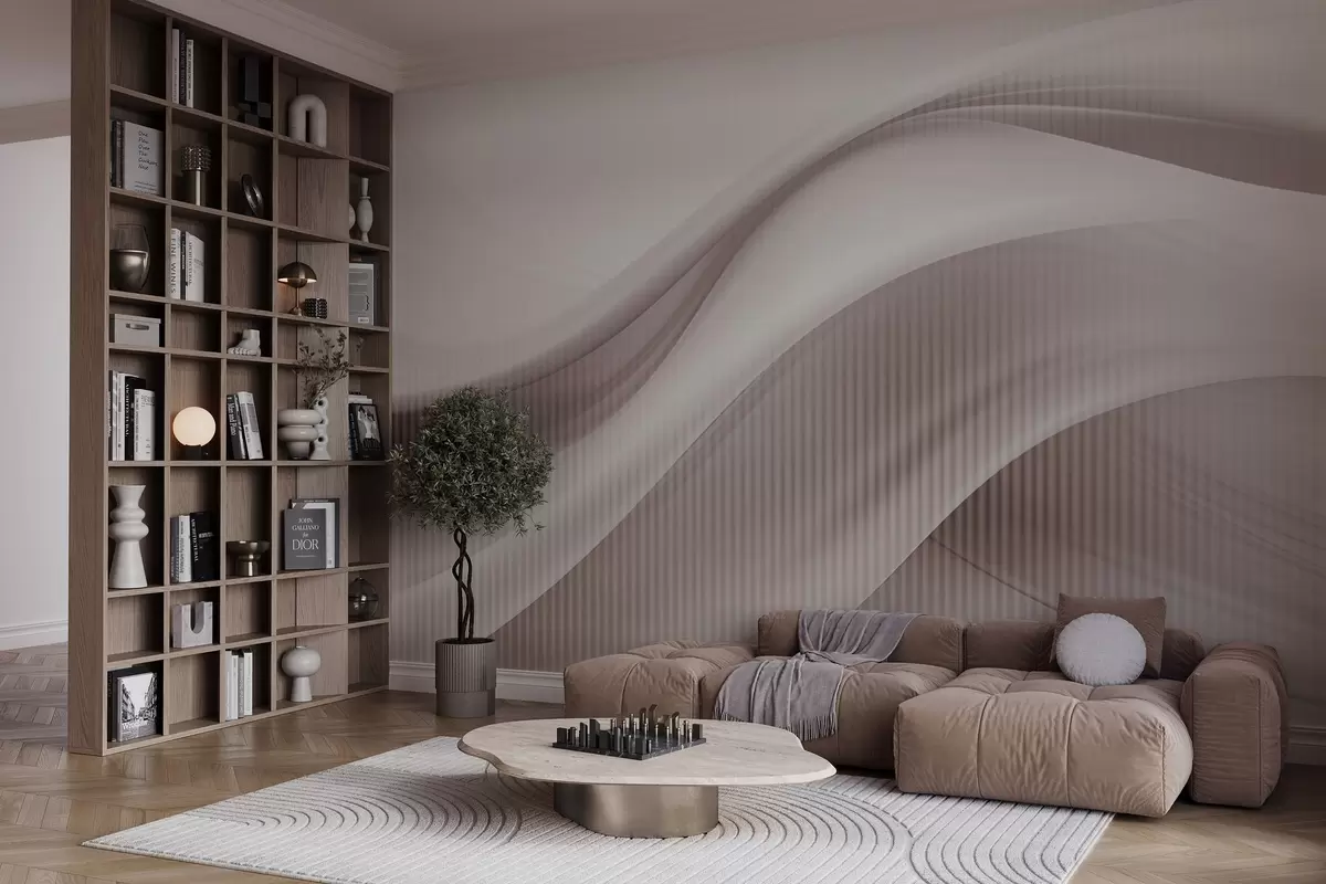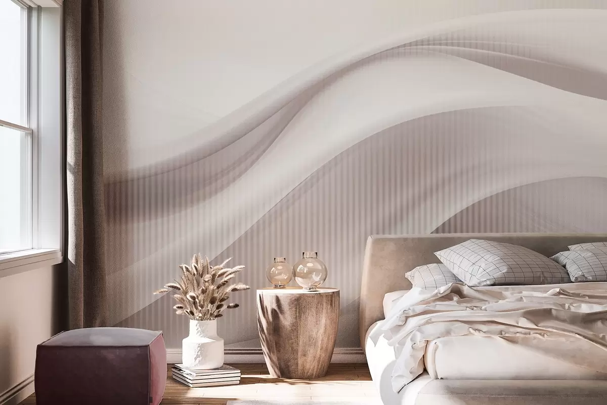 Zidne murale Apstraktni print s tekućim linijama i suptilnim okomitim prugama, stvarajući osjećaj kretanja i dubine, bež paleta br. w09189
