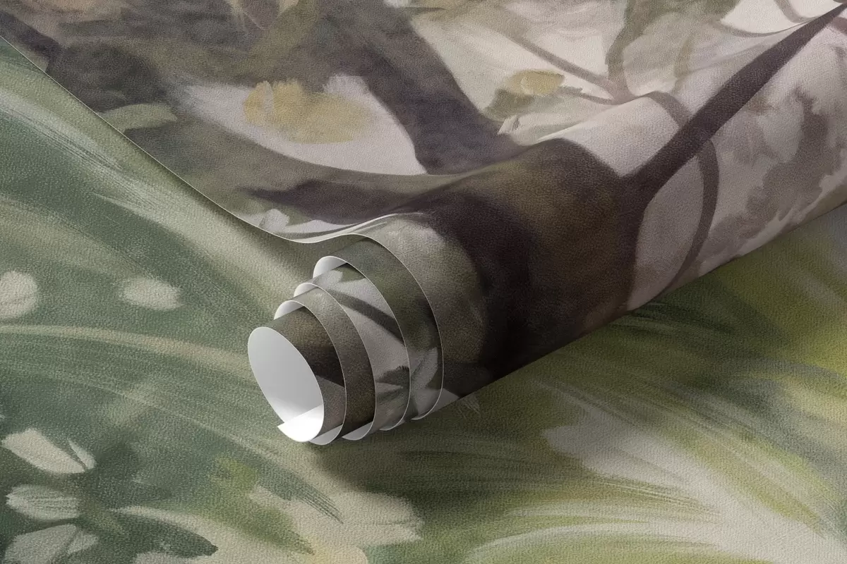 Zidne murale Teksturirani šumski krajolik, drveće s narančastim i zelenim lišćem, pastelna paleta boja br. w09210v1