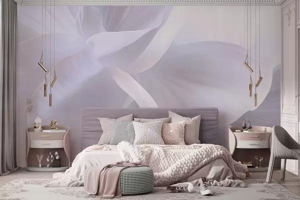 Zidne murale Apstraktni teksturirani cvijet s nježnim laticama, mekana rasvjeta, elegantna kompozicija, minimalistička estetika br. w09211