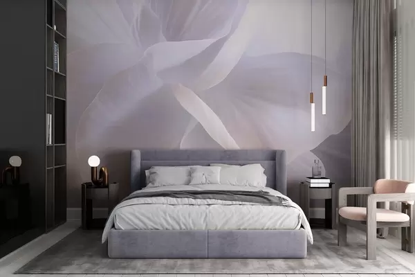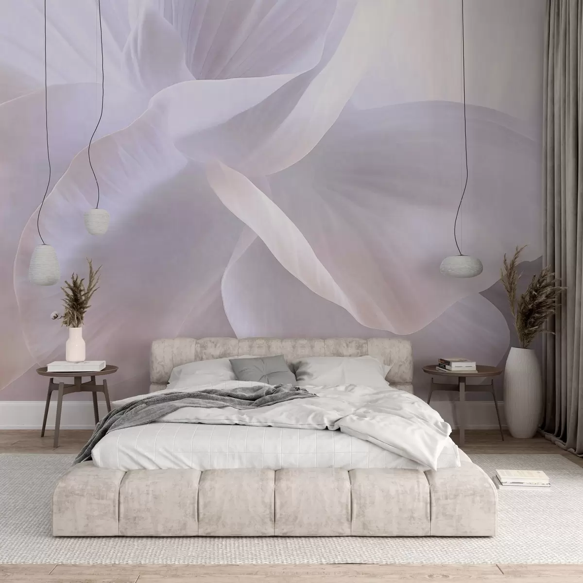 Zidne murale Apstraktni teksturirani cvijet s nježnim laticama, mekana rasvjeta, elegantna kompozicija, minimalistička estetika br. w09211