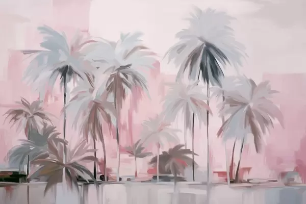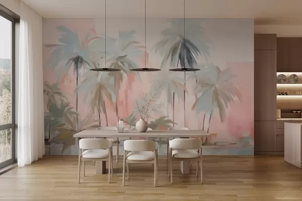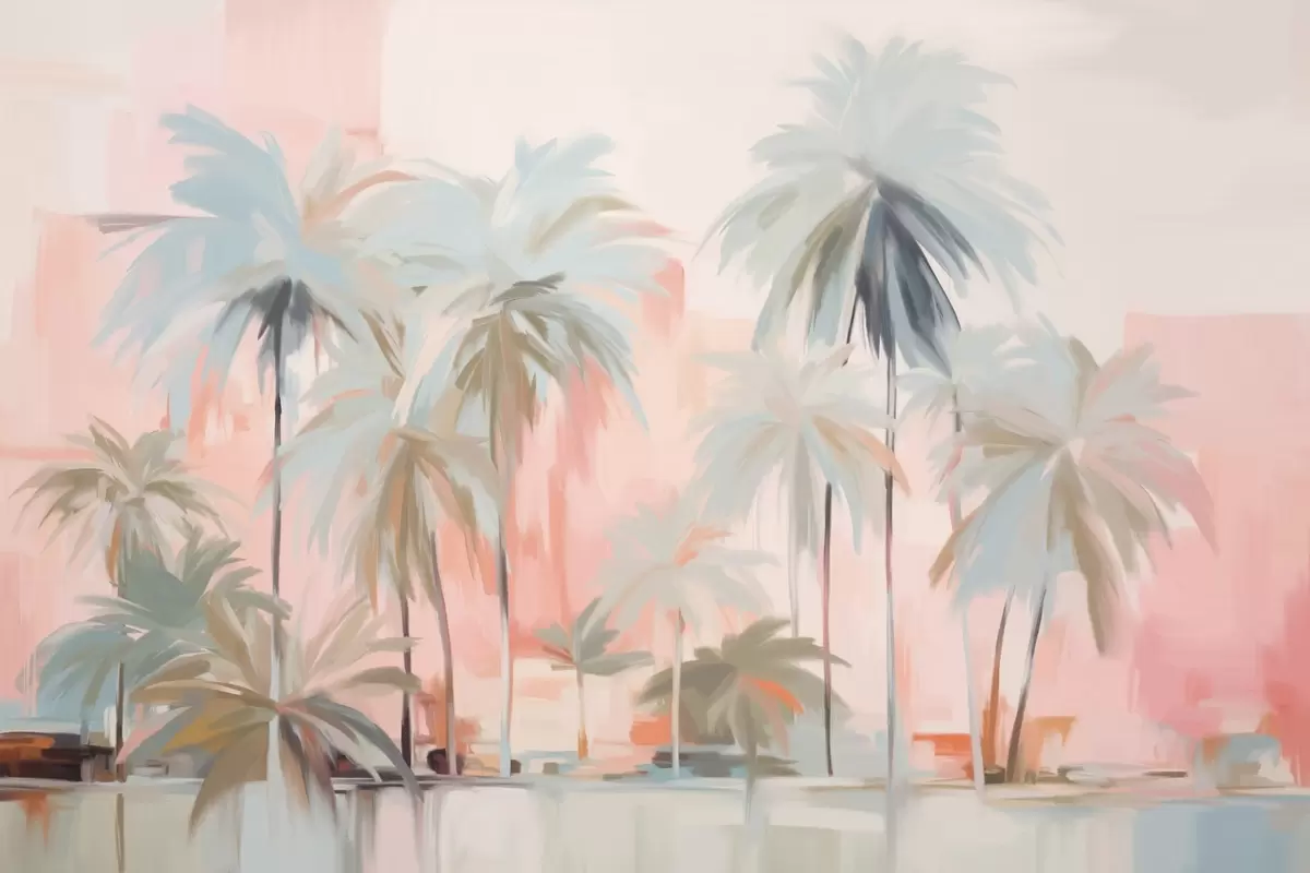 Zidne murale Apstraktne minimalističke pastelne tropske palme, na pozadini nježno ružičastih i breskvastih nijansi br. w09212