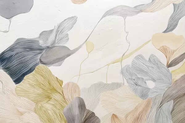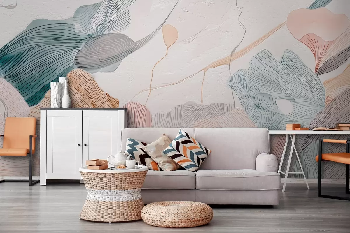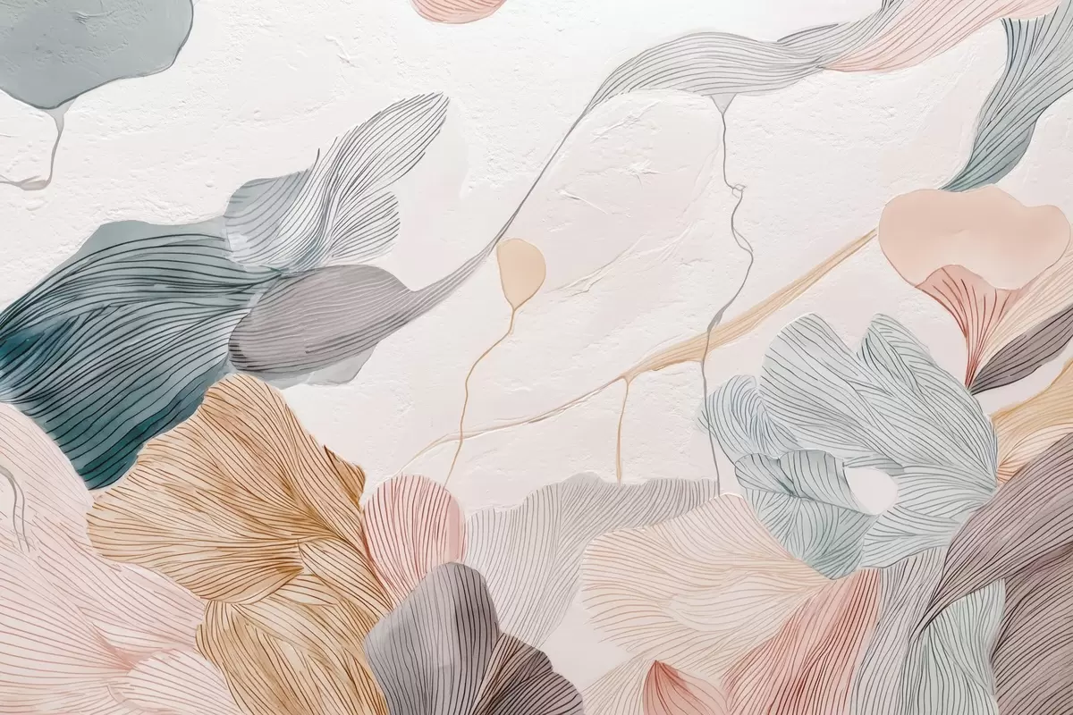Zidne murale Apstraktni grafički listovi u toplim pastelnim tonovima br. w09222