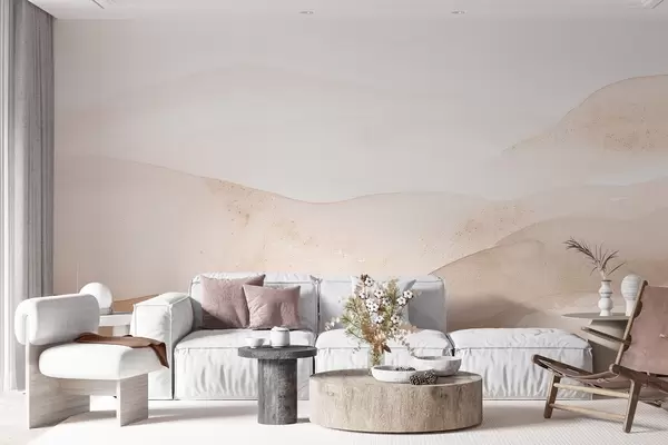Zidne murale Planine u akvarelnom stilu u svijetlim bež nijansama br. w09223