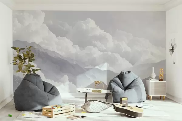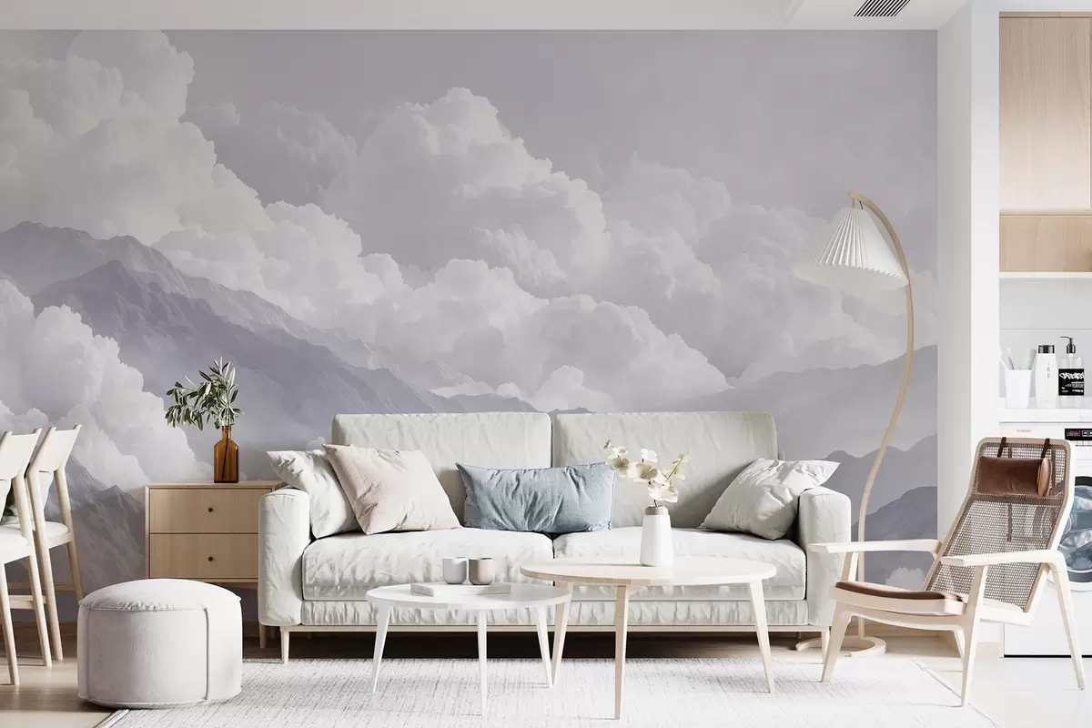 Zidne murale Meki oblaci iznad planina u plavim tonovima br. w09226v2